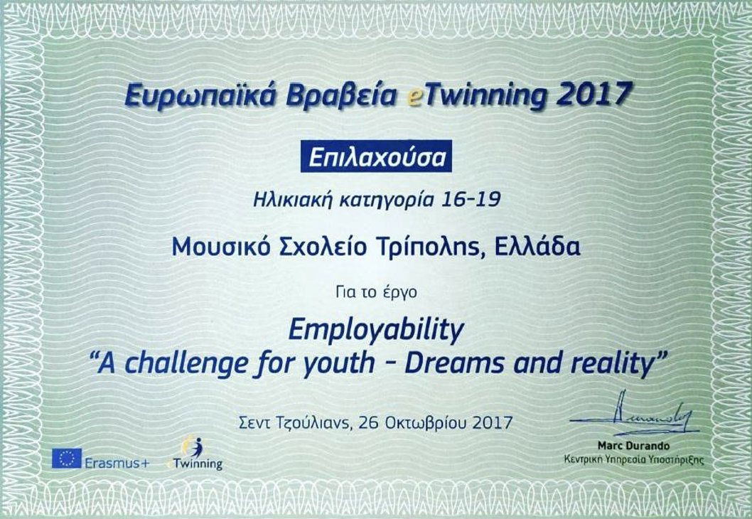 ✔︎ Το εξαιρετικό και πολύτιμο αποτέλεσμα αυτού του έργου Erasmus βραβεύτηκε με την Ετικέτα Ποιότητας e-Twinning το 2016 . Στη συνέχεια αξιολογήθηκε σε κορυφαίο επίπεδο και τιμήθηκε με το Ευρωπαϊκό Σήμα Ποιότητας. Η αξιολόγηση σε επίπεδο ευρωπαϊκών βραβείων έγινε μεταξύ 591 αιτήσεων για έργα e-twinning που υλοποιήθηκαν σε σχολεία σε όλη την Ευρώπη που κατείχαν την Εθνική και Ευρωπαϊκή Ετικέτα Ποιότητας για το 2017. Το Μουσικό Σχολείο Τρίπολης κέρδισε το 2ο Ευρωπαϊκό Βραβείο e-Twinning 2017.