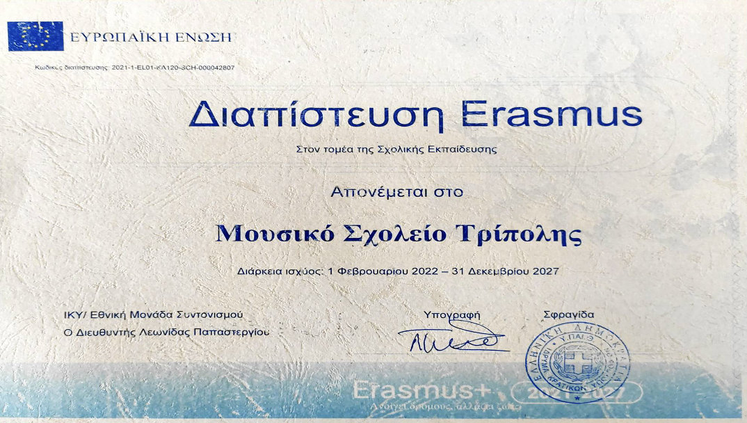 2021 – 2027 Music school of Tripolis got the accreditation 2021-1-EL01-KA120-SCH-000042807